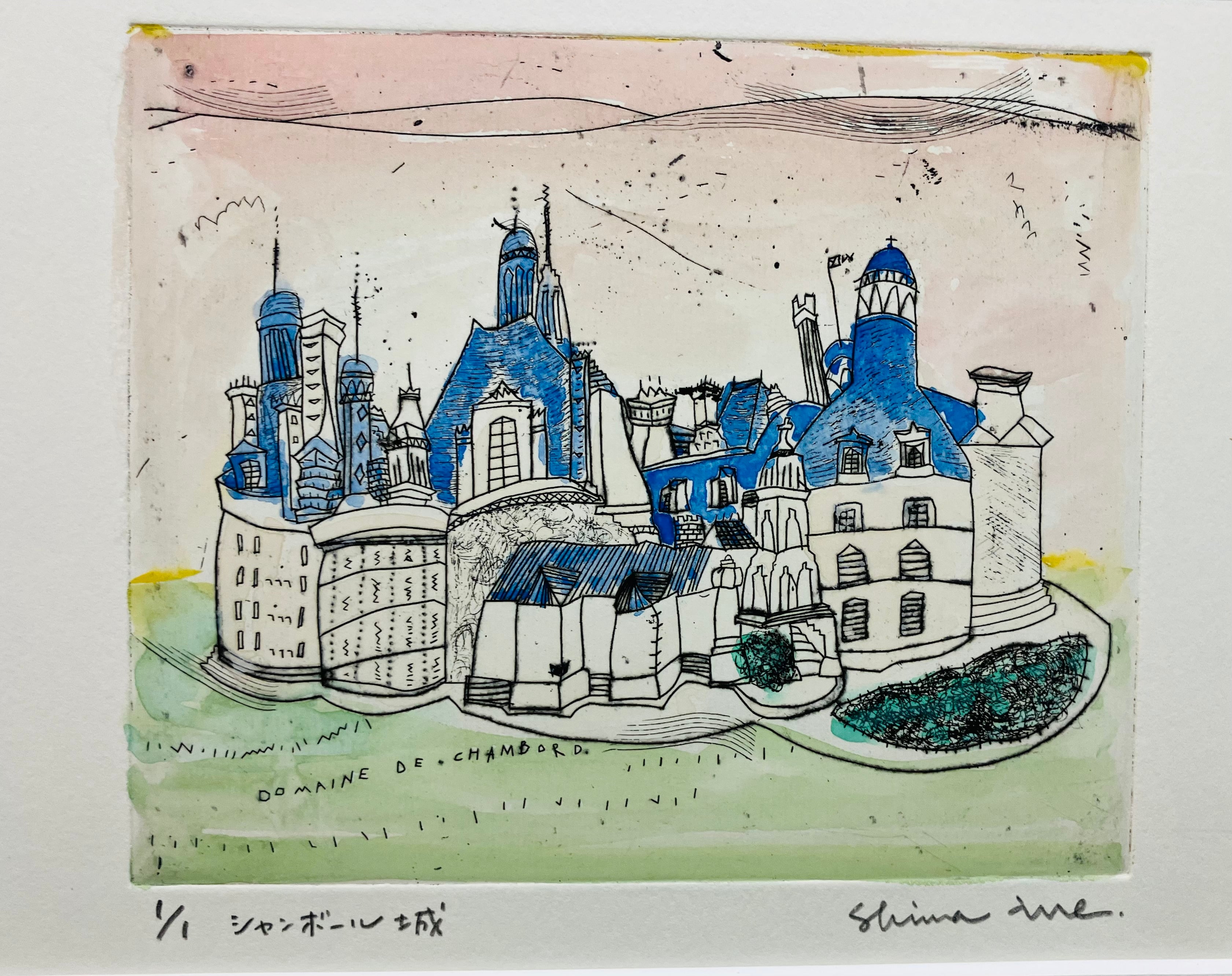 フランス古城めぐりで出会ったシャンボール城。現地でスケッチしたそのままを銅版画作品に仕上げました。