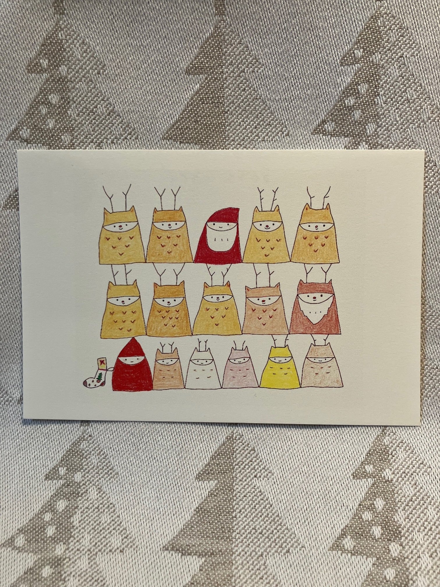 [作品について]イラスト作品を書き心地のよいアラベールホワイトの用紙に印刷しました。クリスマス合唱団です。